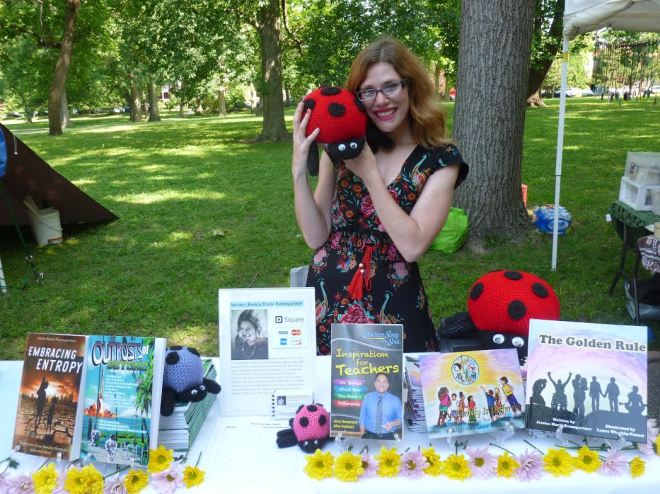 Saturday was sunny and hot. (My kinda weather!-I love extremes. hot and sticky or dry and cold are my favs, but I love it all haha) It was an awesome atmosphere to set up and enjoy good conversation with book lovers and friendly spirits.