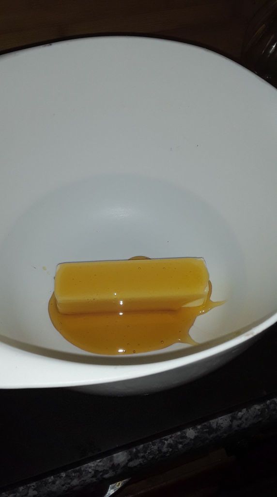 I start with a stick of butter and just cover it in honey. I love honey. Bees are my besties. It’s so good for you and boosts immunities to pollen allergies and other ailments.