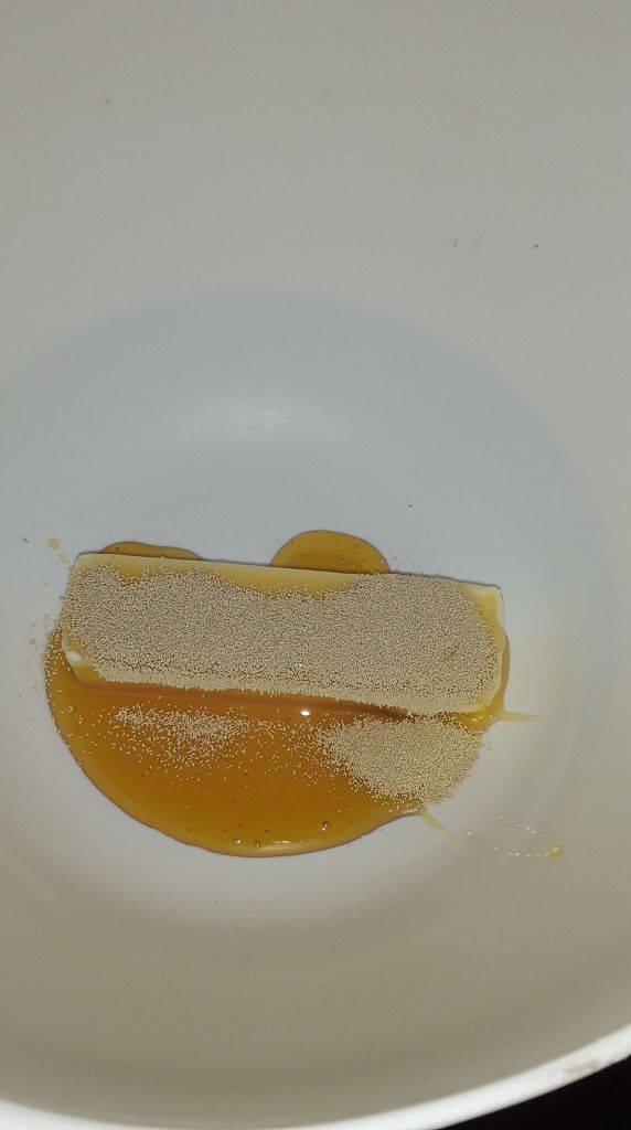 If you want fluffy bread, you gotta use yeast or something similar. Sometimes beer bread works too, but I don’t mind these little guys. I don’t measure, just cover the top of the honey coated butter stick.