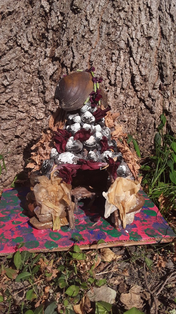 Now, mine looks probably more fit for the kid’s competition. Some of the things adults do are wayy to elaborate and store-bought for me. We tried to only used things around the house: seashells we’ve collected, rocks, peddles, stones, sticks, twigs, leaves, etc.