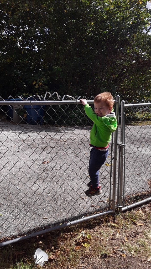 Naturally, my husband and I took him and the baby to the playground where there was plenty of equipment to climb. Aaaand he broke his leg going down a slide… with me.