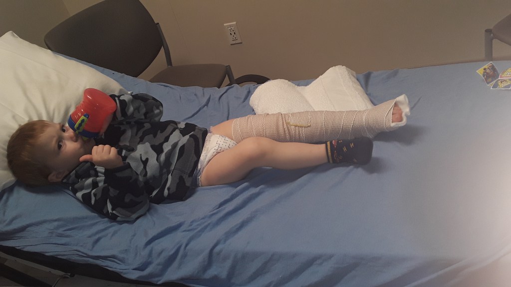 I’ve always been taught that toddlers aren’t prone to bone breaks. Sure they get hurt, but my mom’s big Irish family has been lucky when it comes to health. We always bounce back.