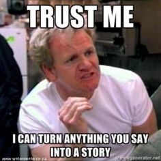 I straight up got a notebook out and was shooting one-liners at my kids while I made dinner. You gotta start somewhere, right? But what makes kids laugh isn’t what makes adults laugh. Getting my husband to at least giggle was a serious trial. One I wasn’t ready for. He didn’t get to read most of what went into. I shot like 2 punchlines at him then burned myself on the skillet. #TooScared