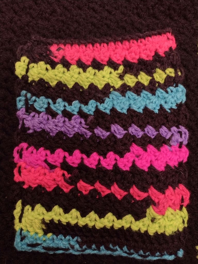 Last row: sc in each stitch across. Fasten off. (I tie mine off with a double knot – I know it’s a crochet no-no to some, but I need to.)