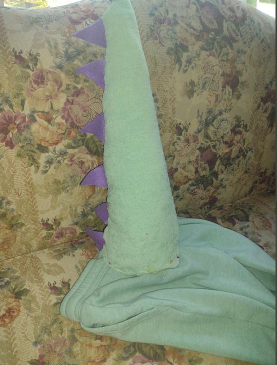 Then, I made a belly piece to put on the hoodie my daughter picked out for the costume and got all the spikes sewed on.
