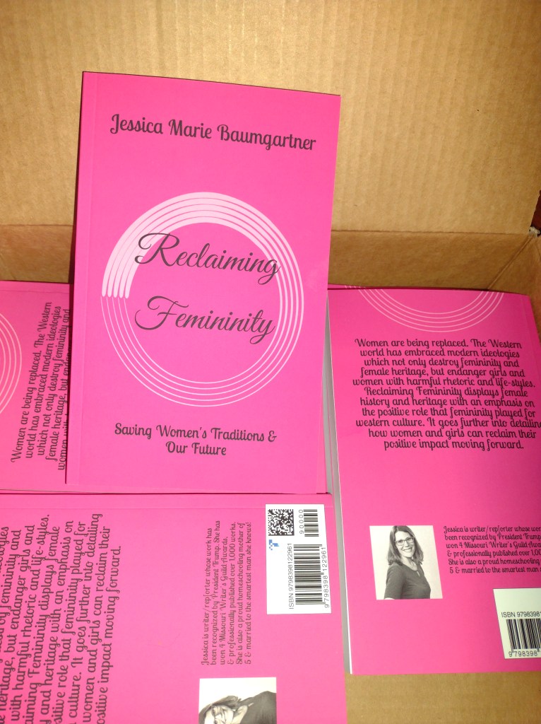 I finally got my stock of “Reclaiming Femininity: Saving Women’s Traditions & Our Future” and love mailing things myself. haha