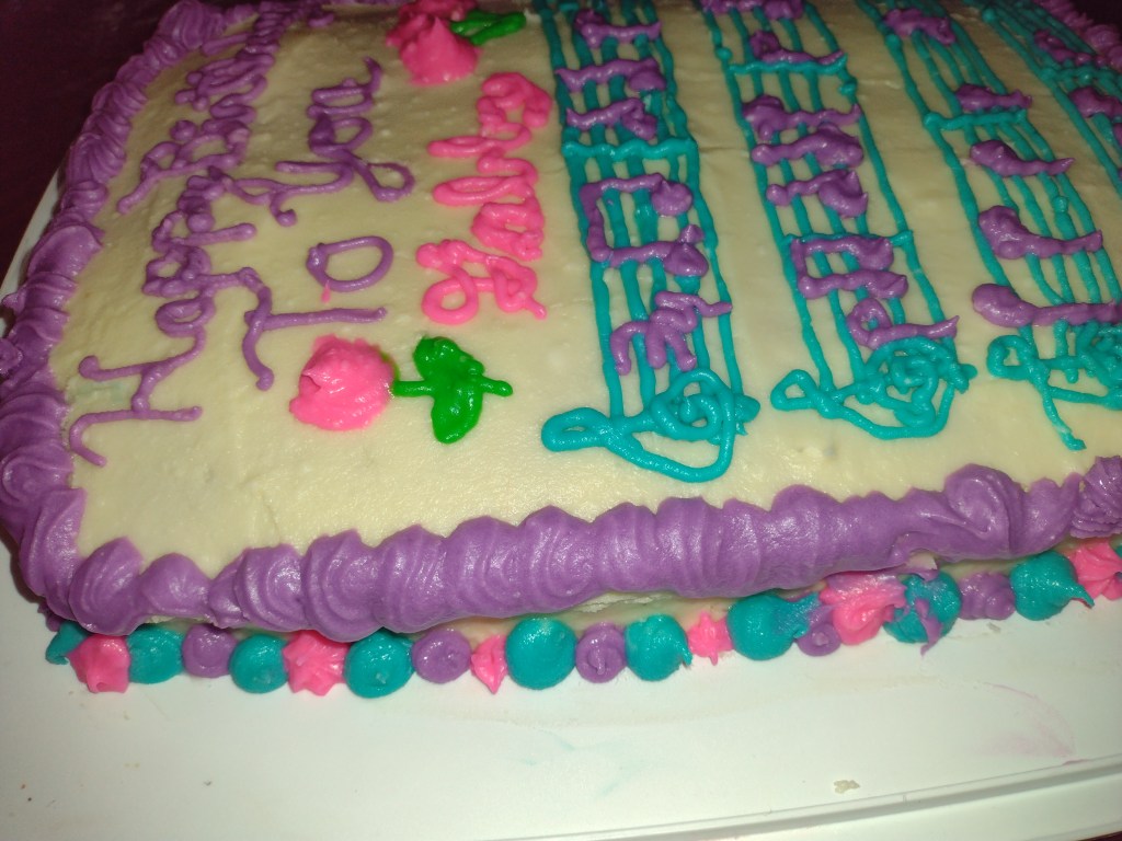 My eldest agreed with him, being a little bit of a pianist herself (very little bit) so I set to work: I call it sheet music on a sheet cake! Or something like that haha