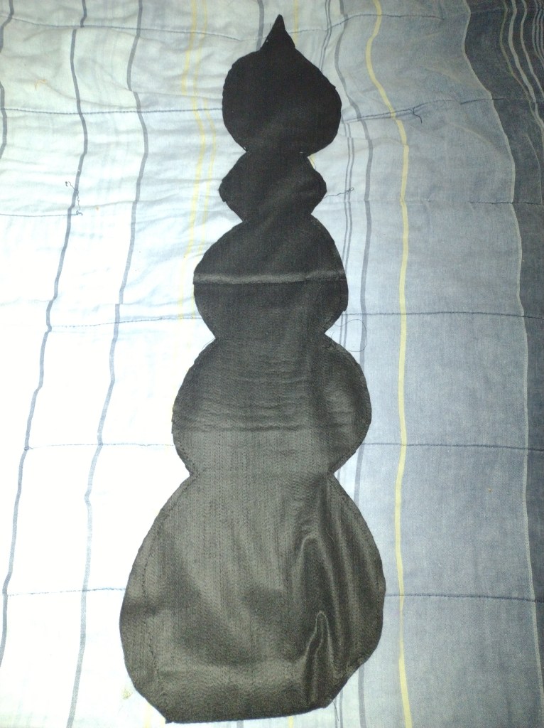This year, my eldest boy decided he wants to be a scorpion. So I got the last yard of black felt fabric from the craft store. We got a matching black hoodie and pants set from the thrift store, and I set to work.
