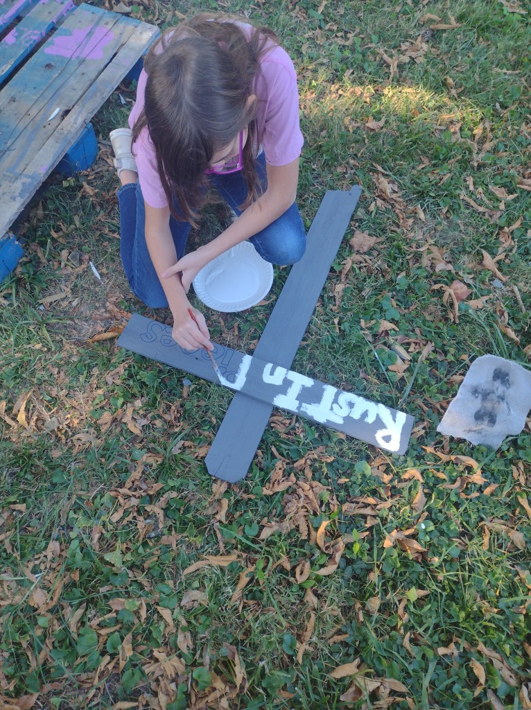 But I got the pieces cut. And even made a couple of easy peasy crosses from some old fence boards we had lying around.