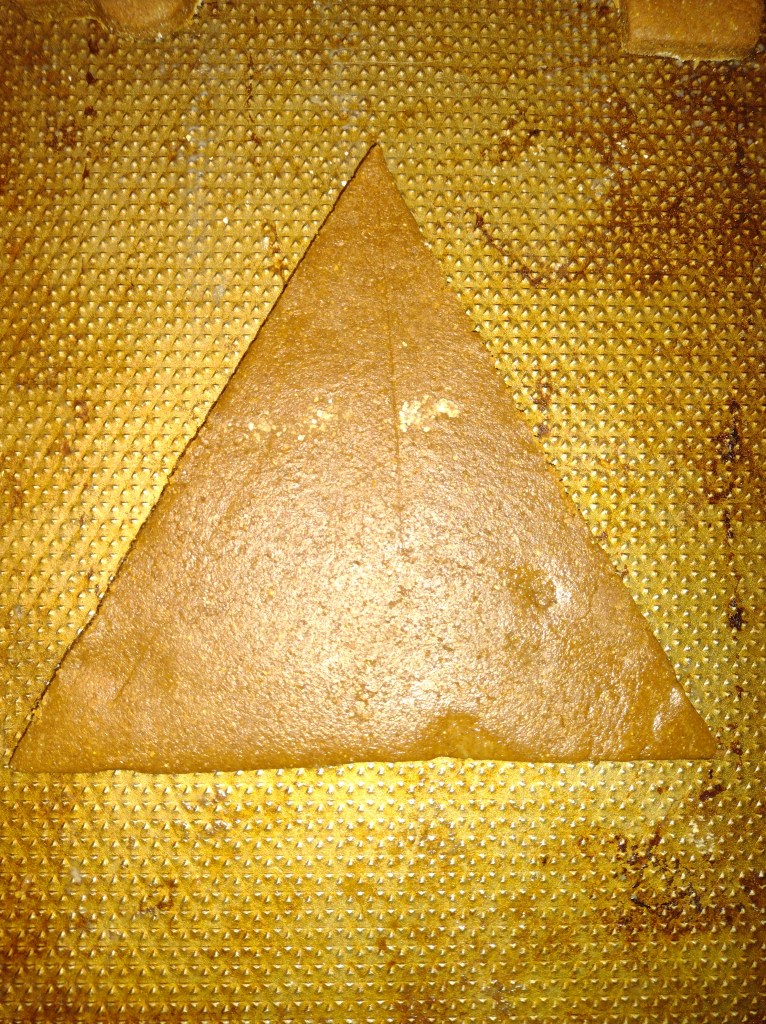 The 4 triangles didn’t quite fit together though; dough does what it wants when baked, so it doesn’t matter how you measure and cut it. It won’t be perfect.