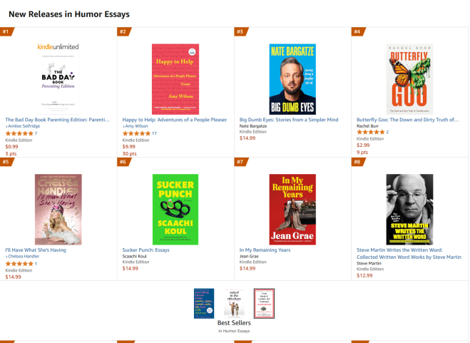 I’m so excited to be a part of this hilarious book. We just hit #1 in New Humor releases, and look! We’re ahead of Steve Martin’s upcoming book.