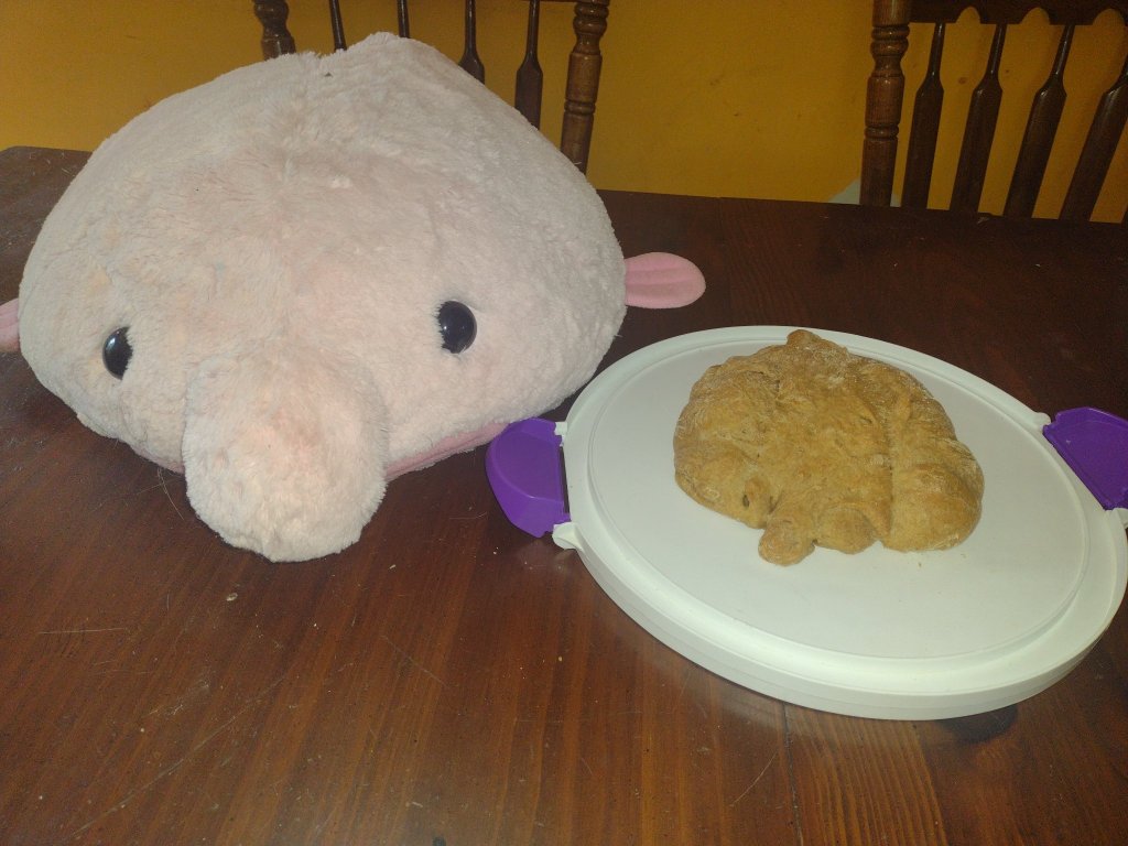 The blobfish craze continues. I think it’s cool that kids love this ugly yet somehow cute weird creature, but there was no way I was making blobfish bread. I made a blobfish cake for my daughter’s 11th birthday party a couple of years ago, and a blobfish pinata so… I’m a bit blobfished out.