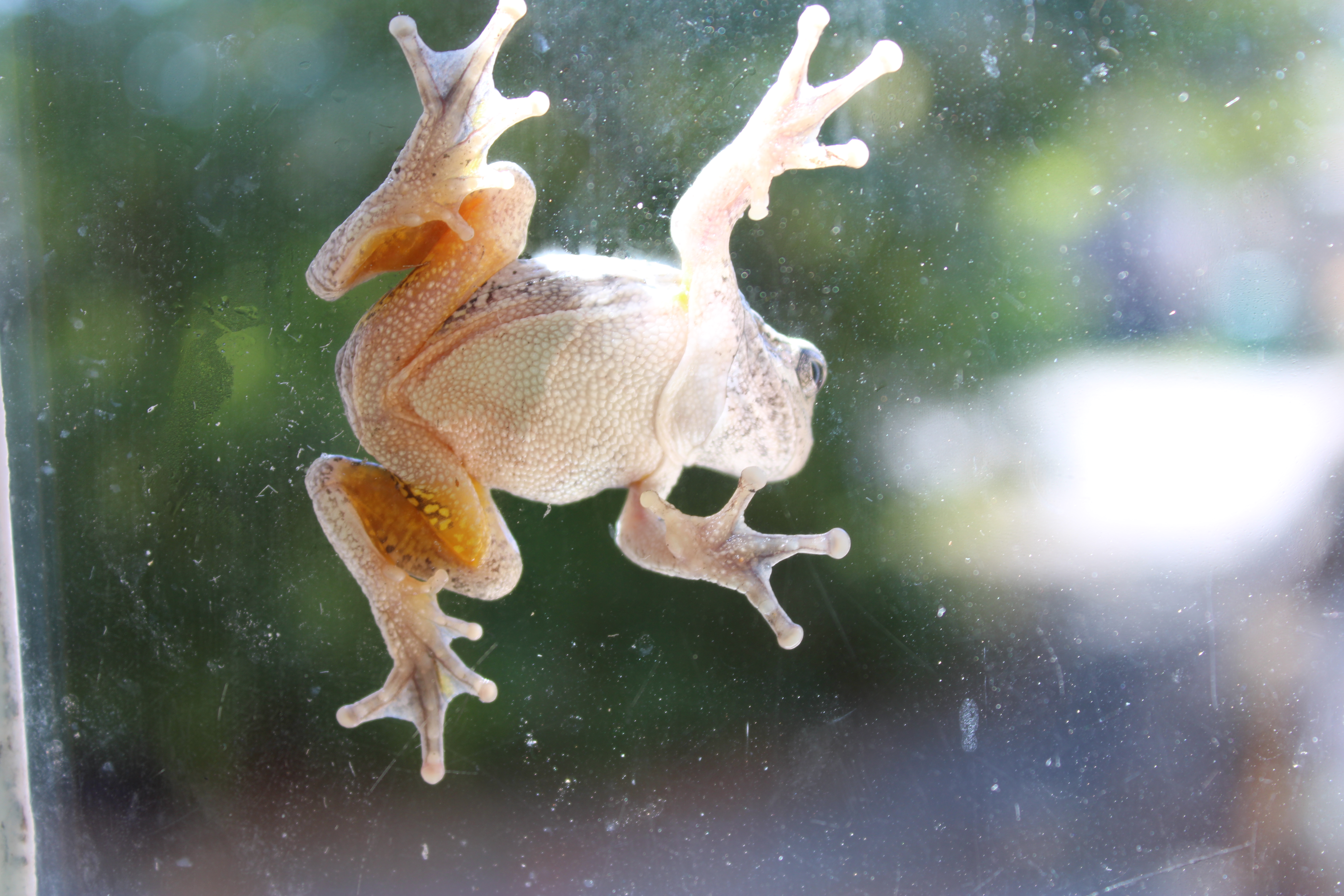 So I was thrilled when an unexpected guest knocked at our side door. I looked up to find a grey tree frog stuck to the window plating, just waiting to be heard.